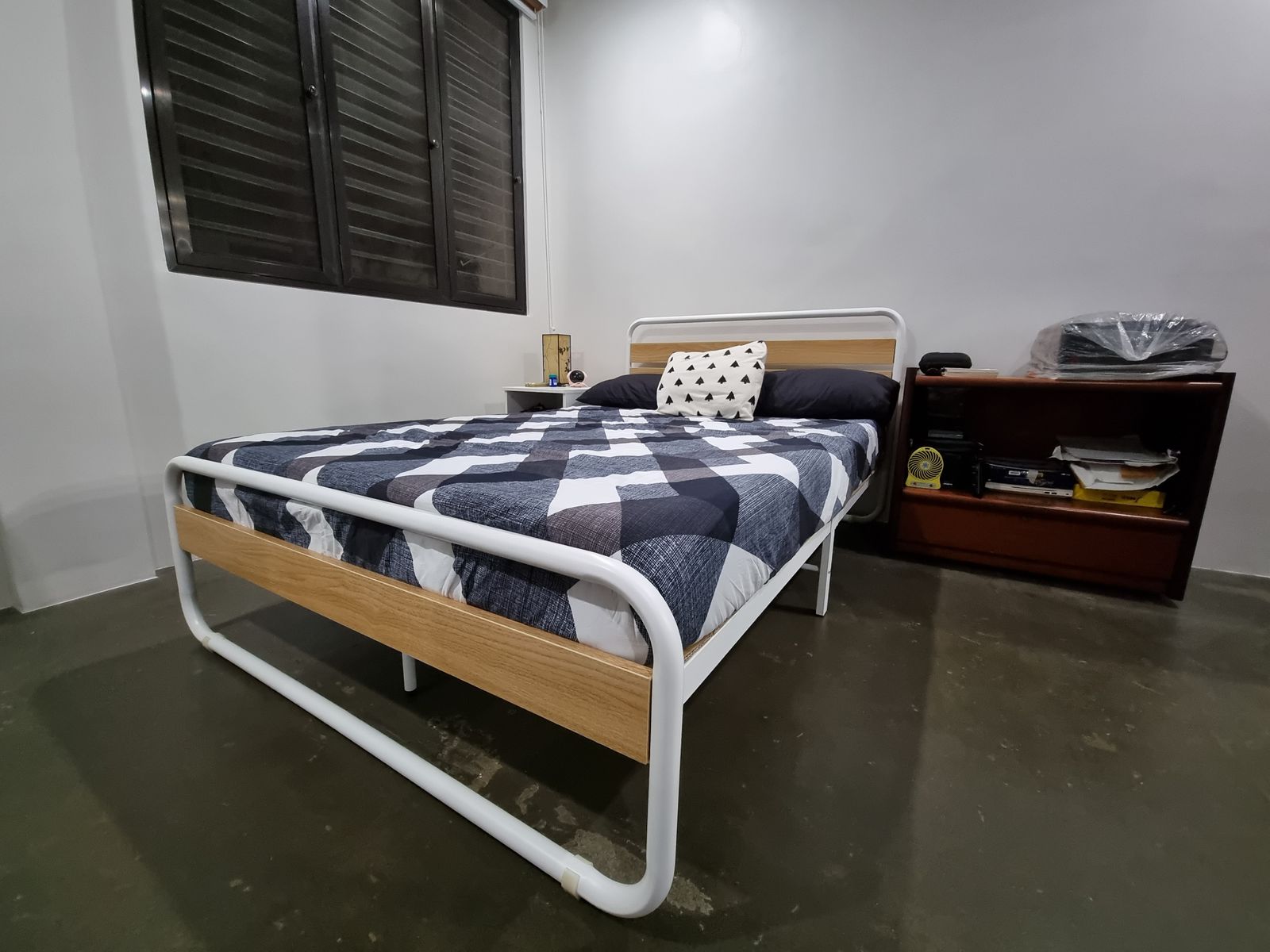 Headboard & Footboard: Made of 32mm dia. thickness: 1.0 mm, round metal tube post with 18mm thickness MDF board with Melamine in powder coated finish. frames & support. |