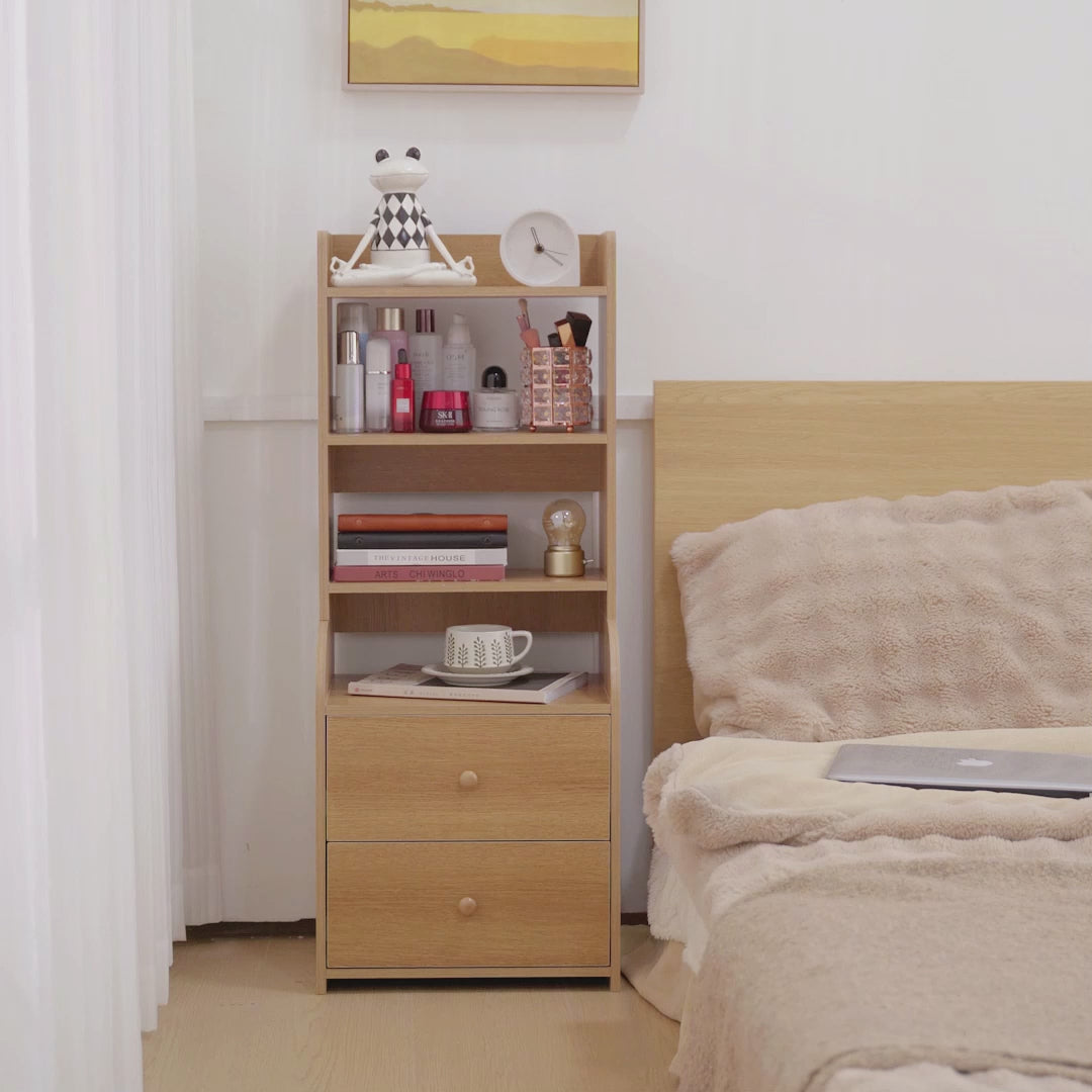 This nightstand offers a tall and versatile storage solution for any bedroom.  |