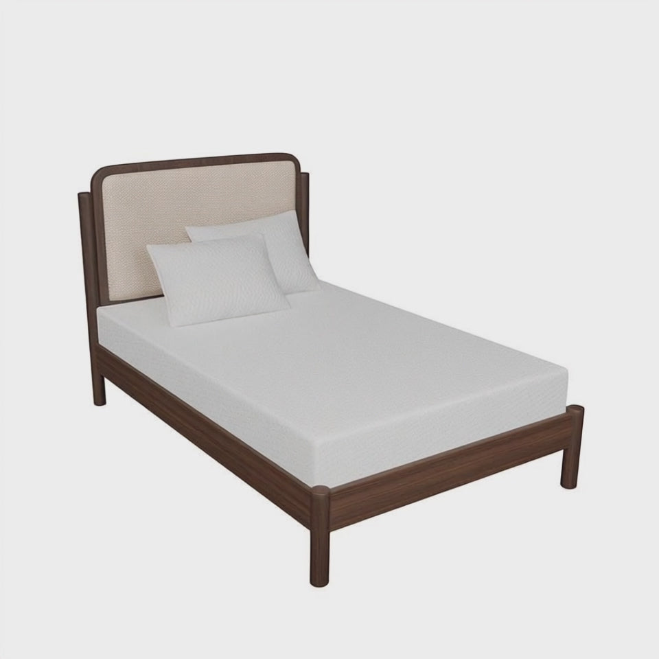 Available in Walnut Brown and Oak finishes with multiple fabric options. The Lyra Bed features a solid pinewood frame paired with a rounded upholstered headboard for a soft, refined look. Its sturdy build and elegant design make it a stylish and comfortable addition to any bedroom. |