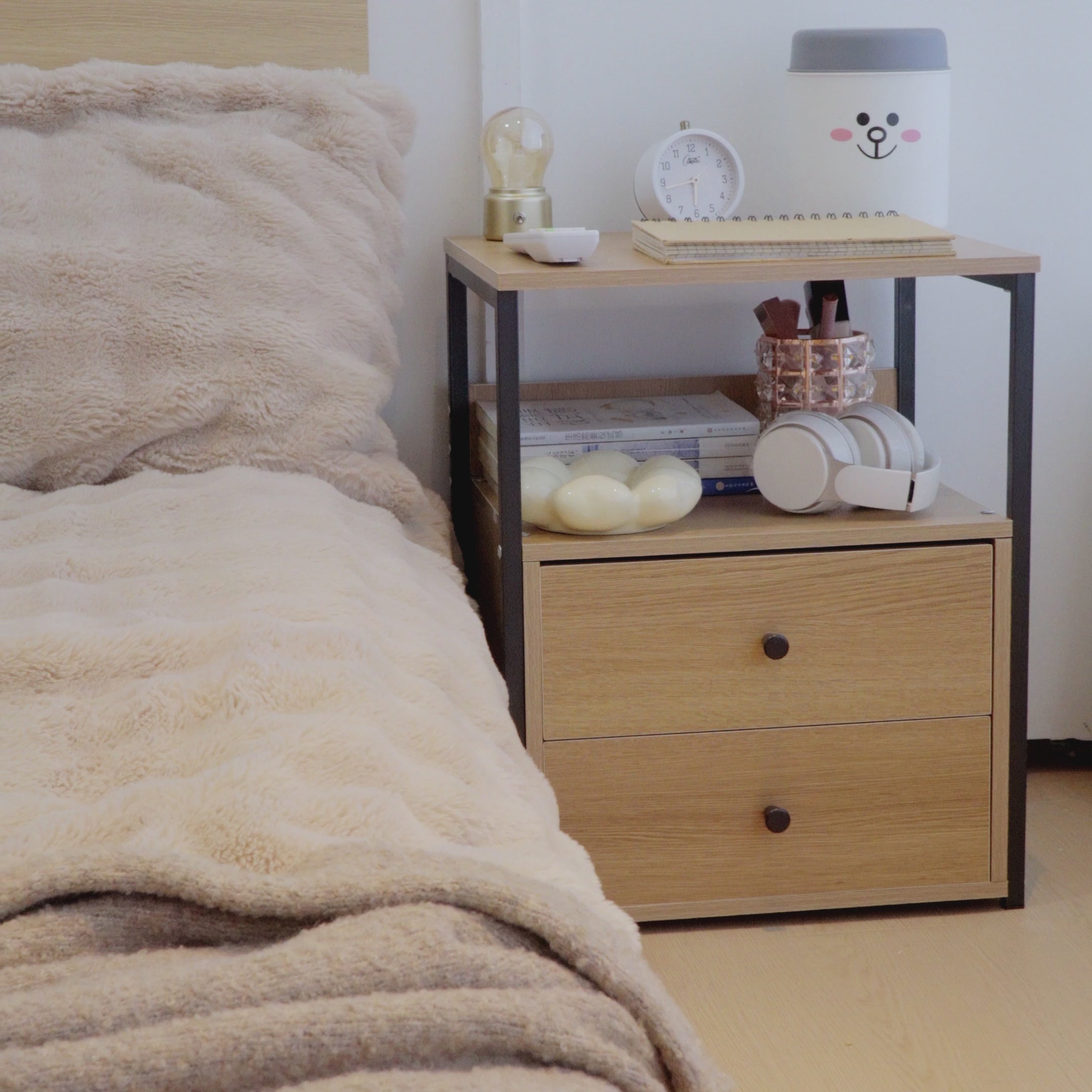 This nightstand offers practical bedside storage with a modern aesthetic.  |