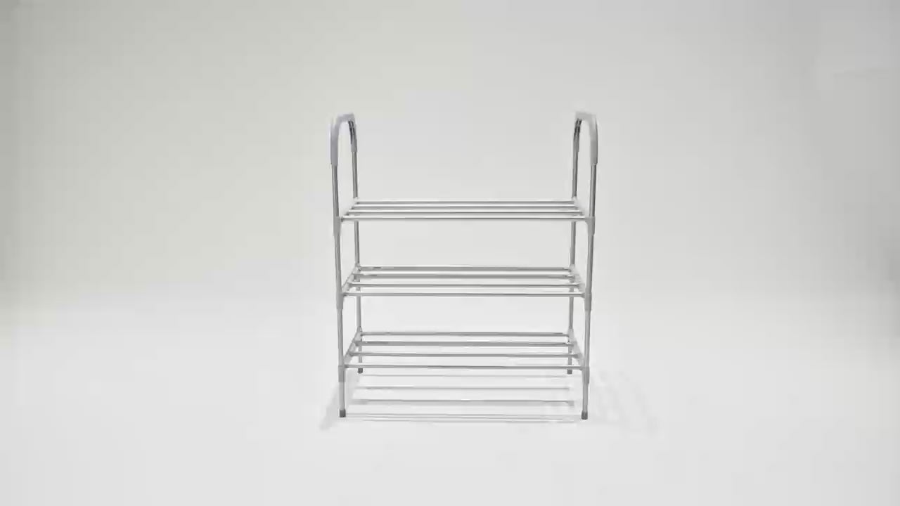 This sturdy and lightweight shoe rack is designed with three layers, each consisting of four tubes seamlessly connected with durable plastic fittings for effortless assembly. |