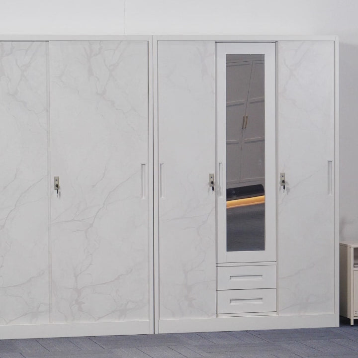 This wardrobe offers a comprehensive storage solution, combining security, organization, and convenient features for any modern bedroom. |